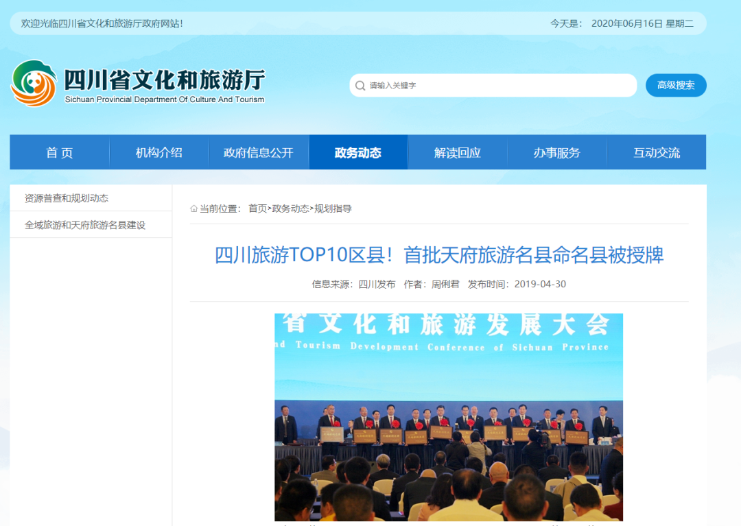 2019年2月22日,四川省文化和旅游廳召開(kāi)新聞通氣會(huì),對(duì)省委辦公廳、省政府辦公廳印發(fā)的《關(guān)于開(kāi)展天府旅游名縣建設(shè)的實(shí)施意見(jiàn)》(以下簡(jiǎn)稱《意見(jiàn)》)進(jìn)行通報(bào)并解讀。