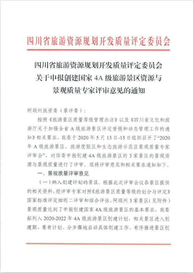 近日,四川省旅游資源規(guī)劃開發(fā)質(zhì)量評定委員會通報了2020年申報創(chuàng)建4A級旅游景區(qū)景觀資源與景觀質(zhì)量專家評審會結(jié)果。