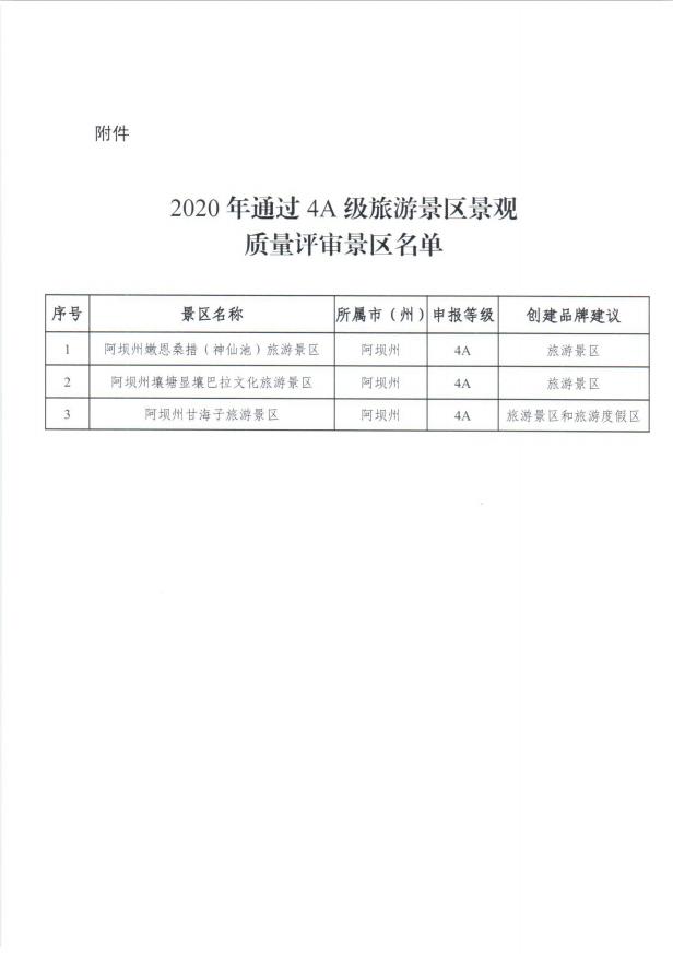 其中九寨溝愛情海(甘海子)等景區(qū)達(dá)到了申報創(chuàng)建4A級旅游景區(qū)的要求,省旅資委同意納入2020年度四川省4A級旅游景區(qū)創(chuàng)建計劃。標(biāo)志著九寨溝愛情海(甘海子)景區(qū)創(chuàng)4A工作進(jìn)入新起點,為期半年的提升創(chuàng)建全面啟動。