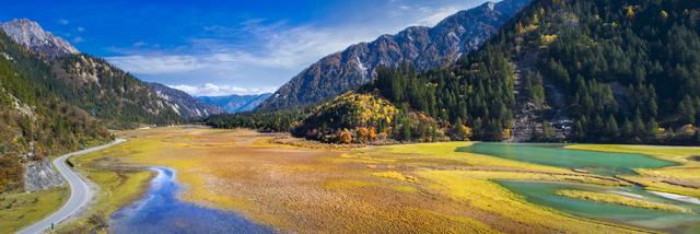 甘海子學(xué)名芳草海,位于松潘縣和九寨溝縣交界處的弓杠嶺,在九寨溝回成都的路旁能夠看到。這里原是一處高山湖泊,后因地質(zhì)變化,出水口擴大,所以當(dāng)?shù)匕傩账追Q“干海子”。其實,“干海子”并不干,這里四周遠(yuǎn)山層疊,森林茂密,海子中溪水蜿蜒,芳草萋萋,如天鵝絨地毯鋪滿大地,夏秋季野花點綴其間,牛羊騾馬成群,冬春時則一片深黃,與周圍的雪山紅葉相映成趣。因此,人們逐漸就把“干海子”叫成了“甘海子”。