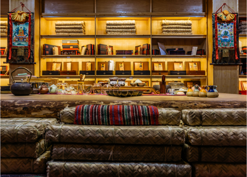 西部牧場內(nèi)的“云上花街”項(xiàng)目,是當(dāng)?shù)夭孛袼孜幕唐返恼故酒脚_(tái)和窗口,集合了藏茶、藏餐、藏香、藏裝藏飾、藏藥、唐卡、藏式吉祥娃娃等各類文化創(chuàng)意產(chǎn)品。品藏茶、穿藏服、學(xué)藏字、制藏香等體驗(yàn)項(xiàng)目能夠激發(fā)游客對(duì)藏民俗文化的探索欲,店鋪內(nèi)售賣的特色文創(chuàng)商品則能滿足旅行者返程后贈(zèng)親送友的社交需求。西部牧場內(nèi)的“云上花街”項(xiàng)目,是當(dāng)?shù)夭孛袼孜幕唐返恼故酒脚_(tái)和窗口,集合了藏茶、藏餐、藏香、藏裝藏飾、藏藥、唐卡、藏式吉祥娃娃等各類文化創(chuàng)意產(chǎn)品。品藏茶、穿藏服、學(xué)藏字、制藏香等體驗(yàn)項(xiàng)目能夠激發(fā)游客對(duì)藏民俗文化的探索欲,店鋪內(nèi)售賣的特色文創(chuàng)商品則能滿足旅行者返程后贈(zèng)親送友的社交需求。