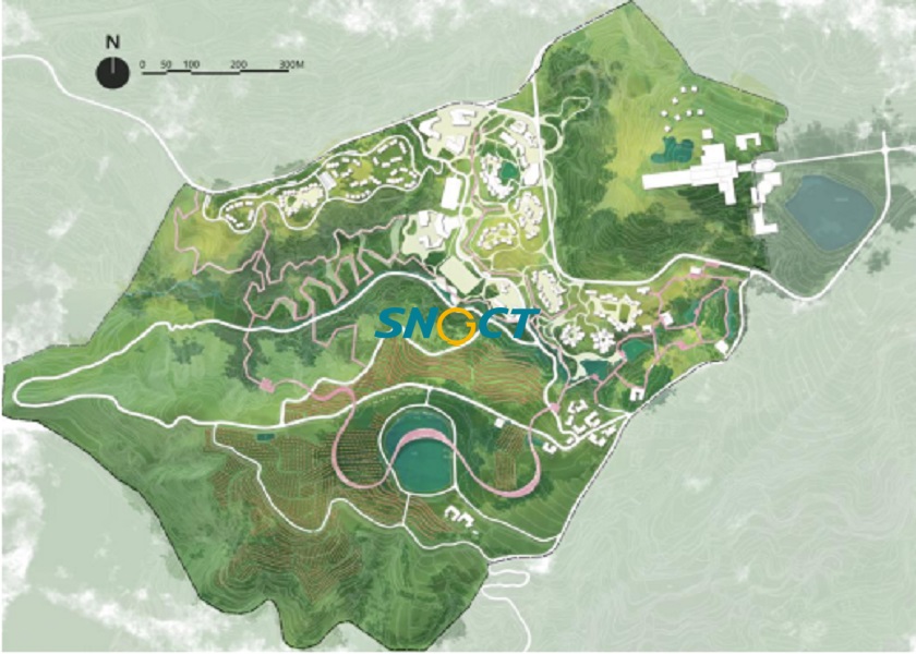 復雜的河谷沖溝地形與嚴苛的干熱河谷氣候是本項目最大的設計挑戰(zhàn),規(guī)劃通過日照光環(huán)境、氣溫、降雨、風環(huán)境等條件,進行合理化的規(guī)劃布局、制定建筑設計策略以及創(chuàng)新引入雨洪管理系統(tǒng),解決當?shù)囟燃倏叼B(yǎng)、娛樂休閑等業(yè)態(tài)所必須的居住環(huán)境、景觀環(huán)景與生態(tài)環(huán)境所面臨的一些列挑戰(zhàn)。同時抓住當?shù)貧v史文脈與地域資源,以“核心綠谷”為規(guī)劃理念,形成了以“水果之都、康養(yǎng)之城、太陽之源”為特色優(yōu)勢,以“西極昧谷,太陽之源,顓頊故里,傈僳之鄉(xiāng)”為文化主題的特色康養(yǎng)度假田園綜合體。